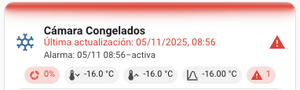 - Número de alarmas en las últimas 24 horas. Al pasar el cursor por encima, indicará el tiempo total en el que el sensor ha estado en alarma.
