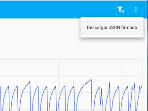 Desde la pantalla de datos históricos, pulsando sobre el menú de tres puntos (arriba a la derecha), podrá acceder a la opción Descargar JSON firmado.